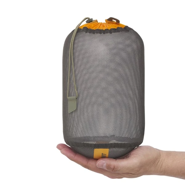 Gemaakt van 75D multi-filament nylon mesh, kunt u zien wat erin zit en tijd besparen zonder veel gewicht toe te voegen. Hij weegt slechts 28 g. Het openen en sluiten gebeurt door een gebruiksvriendelijk 30D Ultra-Sil trekkoord met hypalon treklipje.